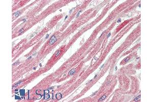 Immunohistochemistry: Paraffin embedded Human Heart. Recommended concentration: 10 μg/mL.
