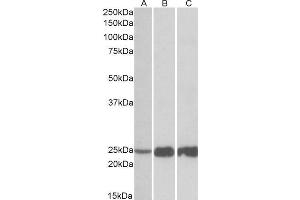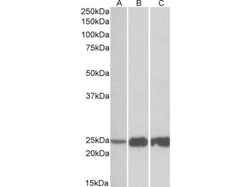 Western Blot: Approx. 25 kDa band observed in Human, Mouse and Rat Skeletal Muscle lysates (calculated MW of 21.3 kDa according to NP_003273.1). Recommended concentration: 0.03-0.1 μg/mL. Primary incubation was 1 hour. This antibody has been successfully us