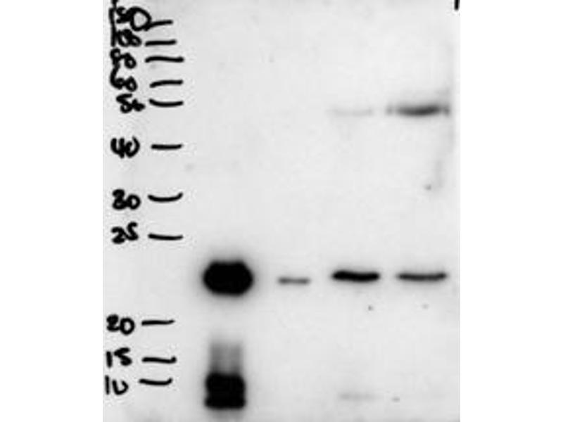 Western Blot: Approx 26 kDa band observed in secretions of Human primary airway cells in culture-and in Human Bronchoalveolar Lavage fluid (calculated MW of 26.7 kDa according to NP_057667.1). Recommended concentration: 1-3 μg/mL.