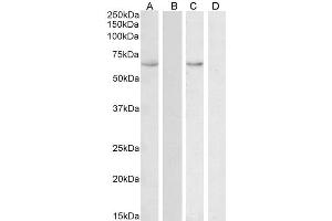 Western Blot: Approx 60-65 kDa band observed in Human Uterus and Colon lysates (calculated MW of 51.9 kDa according to NP_008879.3)..This band was successfully blocked by incubation with the immunizing peptide and corresponds to different antibodies from
