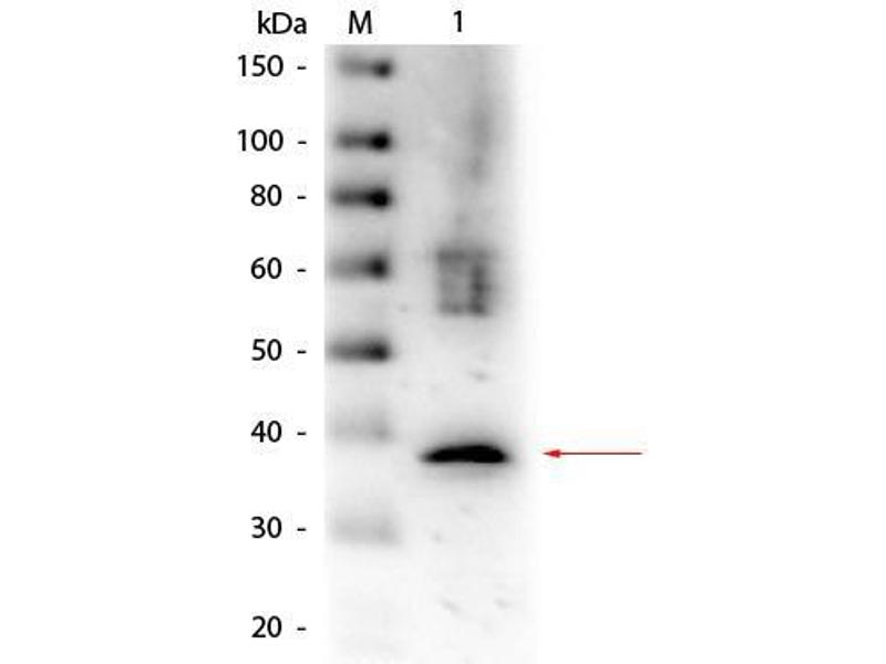 Application Note: Anti-Lactate Dehydrogenase Biotin antibody has been tested by ELISA, Western blot, and immunofluorescence. This antibody is assayed against 1.0 μg of Lactate Dehydrogenase in a standard capture ELISA using Peroxidase Conjugated Streptavidin #S000-03 and ABTS (2,2'-azino-bis-[3-ethylbenthiazoline-6-sulfonic acid]) code # ABTS-100 as a substrate for 30 minutes at room temperature. A working dilution of 1:4,000 to 1:20,000 of the reconstitution concentration is suggested for this product.