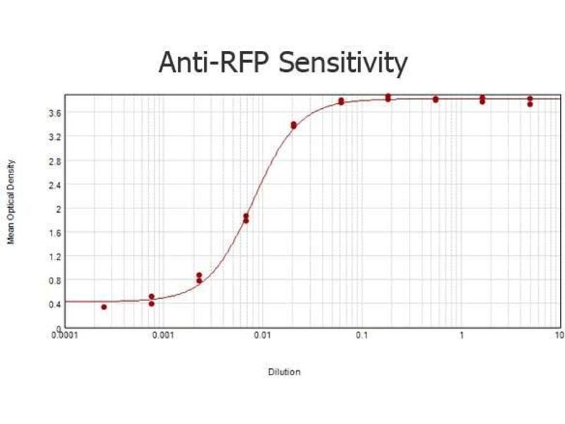 Application Note: Monoclonal anti-RFP is designed to detect RFP and its variants. This antibody has been tested by ELISA and Western blot, and is suitable for use in FISH, IF, IHC, and multiplex assays based on published references. This antibody can be used to detect RFP by ELISA (sandwich or capture) for the direct binding of antigen. Optimal titers for applications should be determined by the researcher.