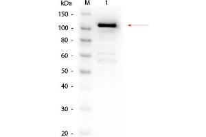Application Note: Anti-Beta Galactosidase Biotin Conjugated Antibody has been tested by Western blot and is suitable for ELISA, immunohistochemistry, immunomicroscopy as well as other antibody based assays using streptavidin or avidin conjugates requiring lot-to-lot consistency. The antibody recognizes both frozen tissue sections, paraffin embedded tissue and 4 % paraformaldehyde fixed tissue for most immunohistochemical analysis. A 1:5,000 dilution has been reported to be successful for staining by immunoblot of beta-galactosidase fusion proteins after transfer using a semi-dry transfer apparatus. A 1:1,500 dilution has been reported to detect beta-galactosidase in adult rat spinal cord tissue after infection with helper-dependent adenovirus expressing lacZ. In this particular experiment, tissue was perfused with 4 % paraformaldehyde and cryostat-cut (35 μm) to produce free-floating sections. A 1:5,000 dilution has been reported to be successful for staining of brain sections from transgenic mice expressing nuclear beta-galactosidase when assayed by immunofluorescence microscopy. A 1:5,000 dilution has been reported for immunofluorescent staining of methanol fixed, devitellinized Drosophila embryos. Although a wide range of conditions was reported to be effective, a 1:10,000 dilution was noted to show no background and to be suitable for double labeling experiments. Optimal titers for other applications should be determined by the researcher.