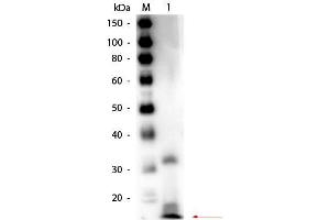 Application Note: Anti-Ribonuclease A Biotin Conjugated antibody has been tested by ELISA and western blot. This product is assayed against 1.0 μg of Ribonuclease A in a standard capture ELISA using Peroxidase Conjugated Streptavidin #S000-03 and ABTS (2,2'-azino-bis-[3-ethylbenthiazoline-6-sulfonic acid]) code # ABTS-100 as a substrate for 30 minutes at room temperature. A working dilution of 1:3,000 to 1:13,000 of the reconstitution concentration is suggested for this product.