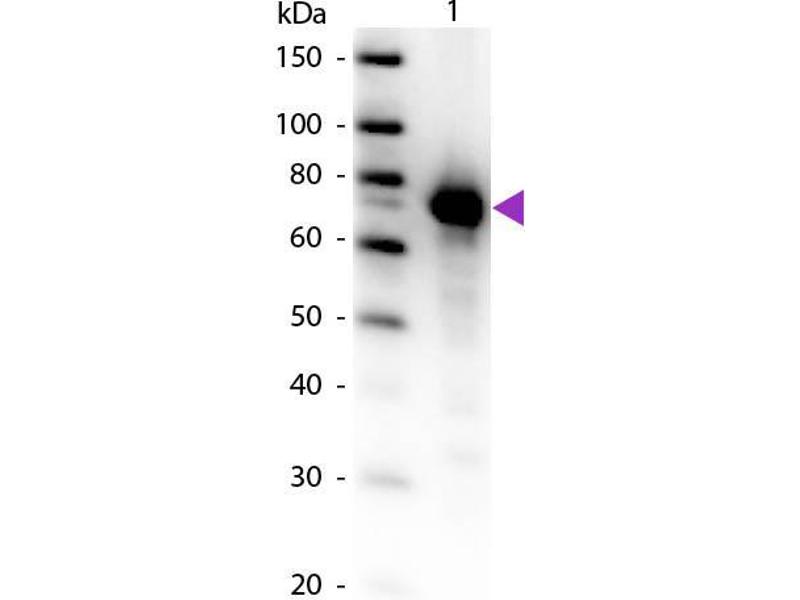 Anti-Transferrin Antibody, Biotin Conjugated is specific for the transferrin protein. Transferrins are iron-binding blood plasma glycoproteins which regulate the level of free iron in biological fluids. When free of bound iron, transferrin is referred to as apotransferrin. Human transferrin is encoded by the TF gene and is mainly synthesized in the liver, but other sources, such as the brain produce it. The main role of transferrin is delivery of iron from absorption centers in the duodenum and macrophages to all tissues. Membrane receptors on erythroid precursors in the bone marrow avidly bind transferrin. Hereditary hemochromatosis and anemia are well establish disorders involving defects in transferrin transport defects. Anti-Transferrin Antibody, Biotin Conjugated is suitable for use in cardiovascular research as well as other basic research. Synonyms: Apotransferrin antibody, Beta 1 metal binding globulin antibody, DKFZp781D0156 antibody, PRO1400 antibody, PRO1557 antibody, PRO2086 antibody, Serotransferrin precursor antibody, Siderophilin antibody, TF antibody
