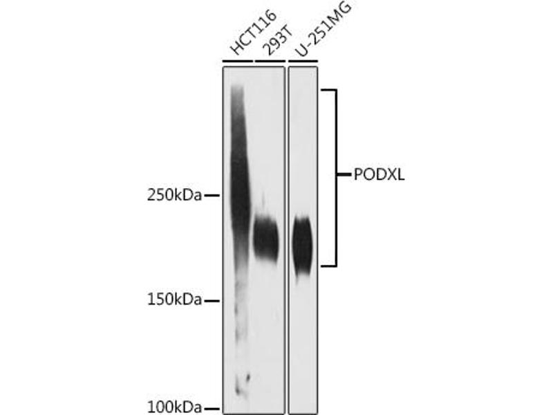 This gene encodes a member of the sialomucin protein family. The encoded protein was originally identified as an important component of glomerular podocytes. Podocytes are highly differentiated epithelial cells with interdigitating foot processes covering the outer aspect of the glomerular basement membrane. Other biological activities of the encoded protein include: binding in a membrane protein complex with Na+/H+ exchanger regulatory factor to intracellular cytoskeletal elements, playing a role in hematopoetic cell differentiation, and being expressed in vascular endothelium cells and binding to L-selectin. [provided by RefSeq, Jul 2008],Gp200, PC, PCLP, PCLP-1,Cancer,Cardiovascular,Cell Biology & Developmental Biology,Cytoskeleton,Extracellular Matrix,Hematopoietic Progenitors,Signal Transduction,Stem Cells,Tumor biomarkers,PODXL