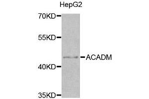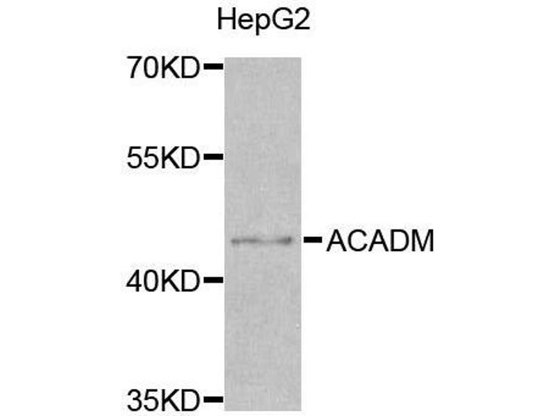 This gene encodes the medium-chain specific (C4 to C12 straight chain) acyl-Coenzyme A dehydrogenase. The homotetramer enzyme catalyzes the initial step of the mitochondrial fatty acid beta-oxidation pathway. Defects in this gene cause medium-chain acyl-CoA dehydrogenase deficiency, a disease characterized by hepatic dysfunction, fasting hypoglycemia, and encephalopathy, which can result in infantile death. Alternatively spliced transcript variants encoding different isoforms have been found for this gene.,ACADM,ACAD1,MCAD,MCADH,Cancer,Signal Transduction,Endocrine & Metabolism,Mitochondrial metabolism,Mitochondrial markers,Lipid Metabolism,Cardiovascular,Lipids,Fatty Acids,ACADM
