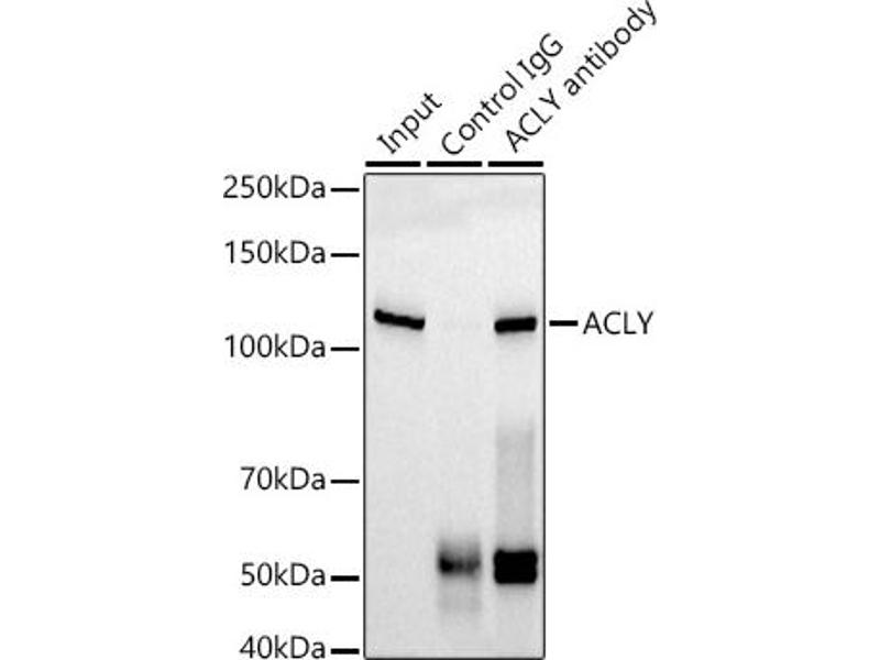 ATP citrate lyase is the primary enzyme responsible for the synthesis of cytosolic acetyl-CoA in many tissues. The enzyme is a tetramer (relative molecular weight approximately 440,000) of apparently identical subunits. It catalyzes the formation of acetyl-CoA and oxaloacetate from citrate and CoA with a concomitant hydrolysis of ATP to ADP and phosphate. The product, acetyl-CoA, serves several important biosynthetic pathways, including lipogenesis and cholesterogenesis. In nervous tissue, ATP citrate-lyase may be involved in the biosynthesis of acetylcholine. Multiple transcript variants encoding distinct isoforms have been identified for this gene. [provided by RefSeq, Dec 2014],ACL, ATPCL, CLATP,Cancer,Endocrine & Metabolism,Insulin Receptor Signaling Pathway,Lipid Metabolism,Protein phosphorylation,Signal Transduction,Warburg Effect,ACLY