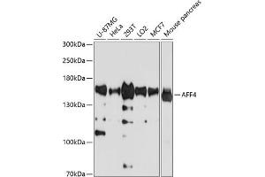 The protein encoded by this gene belongs to the AF4 family of transcription factors involved in leukemia. It is a component of the positive transcription elongation factor b (P-TEFb) complex. A chromosomal translocation involving this gene and MLL gene on chromosome 11 is found in infant acute lymphoblastic leukemia with ins(5,11)(q31,q31q23).,AFF4,AF5Q31,CHOPS,MCEF,Epigenetics & Nuclear Signaling,Transcription Factors,Cell Biology & Developmental Biology,Cell Cycle,Cyclins,AFF4