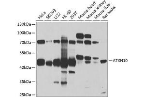 This gene encodes a protein that may function in neuron survival, neuron differentiation, and neuritogenesis. These roles may be carried out via activation of the mitogen-activated protein kinase cascade. Expansion of an ATTCT repeat from 9-32 copies to 800-4500 copies in an intronic region of this locus has been associated with spinocerebellar ataxia, type 10. Alternatively spliced transcript variants have been described.,ATXN10,E46L,HUMEEP,SCA10,ataxin-10,Neuroscience,ATXN10
