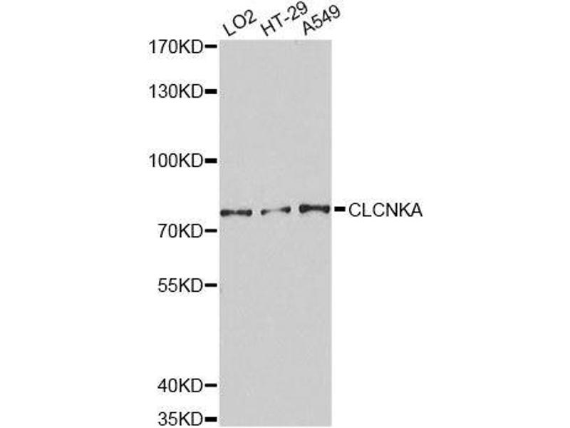 Der Kaninchen Polyklonal anti-CLCNKA Antikörper (ABIN1679253) detektiert spezifisch CLCNKA in WB.