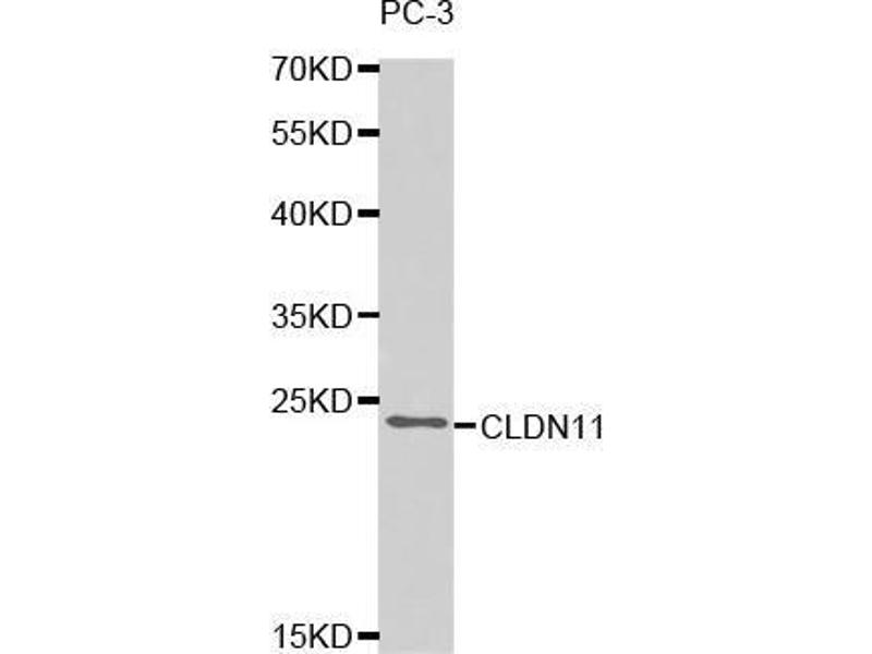 - This gene encodes a member of the claudin family. Claudins are integral membrane proteins and components of tight junction strands. Tight junction strands serve as a physical barrier to prevent solutes and water from passing freely through the paracellular space between epithelial or endothelial cell sheets, and also play critical roles in maintaining cell polarity and signal transductions. The protein encoded by this gene is a major component of central nervous system (CNS) myelin and plays an important role in regulating proliferation and migration of oligodendrocytes. Mouse studies showed that the gene deficiency results in deafness and loss of the Sertoli cell epithelial phenotype in the testis. This protein is a tight junction protein at the human blood-testis barrier (BTB), and the BTB disruption is related to a dysfunction of this gene. Alternatively spliced transcript variants encoding different isoforms have been identified.,CLDN11,OSP,OTM,Immunology & Inflammation,Neuroscience,Cell Type Marker,Neurodegenerative Diseases,Oligodendrocyte marker,CLDN11