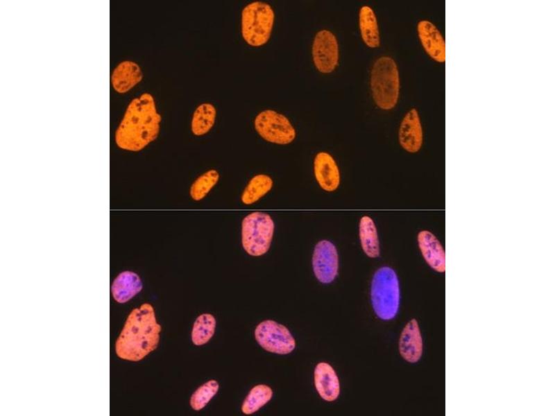 This gene belongs to the subfamily of ubiquitously expressed heterogeneous nuclear ribonucleoproteins (hnRNPs). The hnRNPs are RNA binding proteins and they form complexes with heterogeneous nuclear RNA (hnRNA). These proteins are associated with pre-mRNAs in the nucleus and appear to influence pre-mRNA processing and other aspects of mRNA metabolism and transport. While all of the hnRNPs are present in the nucleus, some seem to shuttle between the nucleus and the cytoplasm. The hnRNP proteins have distinct nucleic acid binding properties. The protein encoded by this gene contains a RNA binding domain and scaffold-associated region (SAR)-specific bipartite DNA-binding domain. This protein is also thought to be involved in the packaging of hnRNA into large ribonucleoprotein complexes. During apoptosis, this protein is cleaved in a caspase-dependent way. Cleavage occurs at the SALD site, resulting in a loss of DNA-binding activity and a concomitant detachment of this protein from nuclear structural sites. But this cleavage does not affect the function of the encoded protein in RNA metabolism. At least two alternatively spliced transcript variants have been identified for this gene. [provided by RefSeq, Jul 2008],EIEE54, HNRNPU-AS1, HNRPU, SAF-A, SAFA, U21.1, hnRNP U,Epigenetics & Nuclear Signaling,RNA Binding,HNRNPU