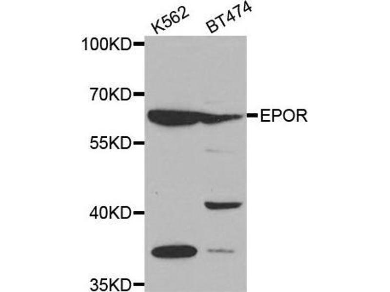 This gene encodes the erythropoietin receptor which is a member of the cytokine receptor family. Upon erythropoietin binding, this receptor activates Jak2 tyrosine kinase which activates different intracellular pathways including: Ras/MAP kinase, phosphatidylinositol 3-kinase and STAT transcription factors. The stimulated erythropoietin receptor appears to have a role in erythroid cell survival. Defects in the erythropoietin receptor may produce erythroleukemia and familial erythrocytosis. Dysregulation of this gene may affect the growth of certain tumors. Alternate splicing results in multiple transcript variants.,EPOR,EPO-R,Signal Transduction,G protein signaling,Signal Transduction,Cell Biology & Developmental Biology,Apoptosis,Immunology & Inflammation,Stem Cells,Hematopoietic Progenitors,Cardiovascular,Angiogenesis,Heart,Hypertrophy,EPOR