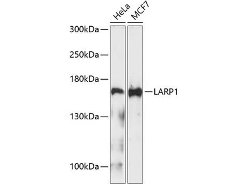 RNA-binding protein that regulates the translation of specific target mRNA species downstream of the mTORC1 complex, in function of growth signals and nutrient availability. Interacts on the one hand with the 3' poly-A tails that are present in all mRNA molecules, and on the other hand with the 7-methylguanosine cap structure of mRNAs containing a 5' terminal oligopyrimidine (5'TOP motif, which is present in mRNAs encoding ribosomal proteins and several components of the translation machinery. The interaction with the 5' end of mRNAs containing a 5'TOP motif leads to translational repression by preventing the binding of EIF4G1. When mTORC1 is activated, LARP1 is phosphorylated and dissociates from the 5' untranslated region (UTR of mRNA. Does not prevent binding of EIF4G1 to mRNAs that lack a 5'TOP motif. Interacts with the free 40S ribosome subunit and with ribosomes, both monosomes and polysomes. Under normal nutrient availability, interacts primarily with the 3' untranslated region (UTR of mRNAs encoding ribosomal proteins and increases protein synthesis. Associates with actively translating ribosomes and stimulates translation of mRNAs containing a 5'TOP motif, thereby regulating protein synthesis, and as a consequence, cell growth and proliferation. Stabilizes mRNAs species with a 5'TOP motif, which is required to prevent apoptosis.,LARP1,LARP,Epigenetics & Nuclear Signaling,RNA Binding,LARP1