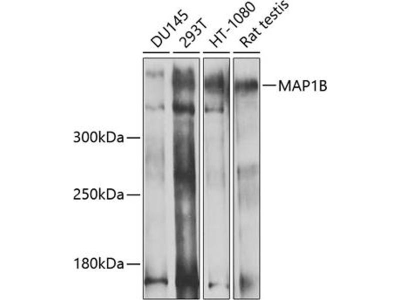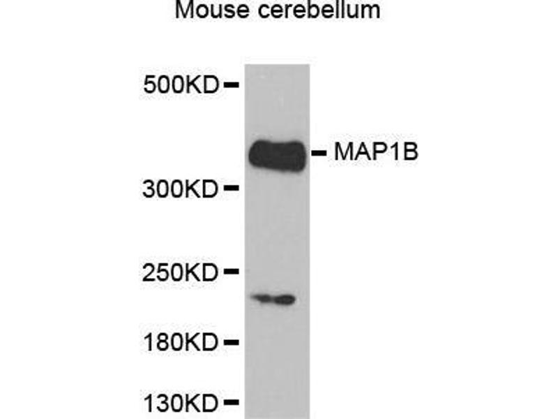This gene encodes a protein that belongs to the microtubule-associated protein family. The proteins of this family are thought to be involved in microtubule assembly, which is an essential step in neurogenesis. The product of this gene is a precursor polypeptide that presumably undergoes proteolytic processing to generate the final MAP1B heavy chain and LC1 light chain. Gene knockout studies of the mouse microtubule-associated protein 1B gene suggested an important role in development and function of the nervous system.,MAP1B,FUTSCH,MAP5,PPP1R102,Signal Transduction,Cell Biology & Developmental Biology,Cell Adhesion,Cytoskeleton,Microtubules,Neuroscience,Cell Type Marker,Microglia marker,Neuron marker,Axon marker,MAP1B