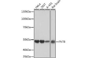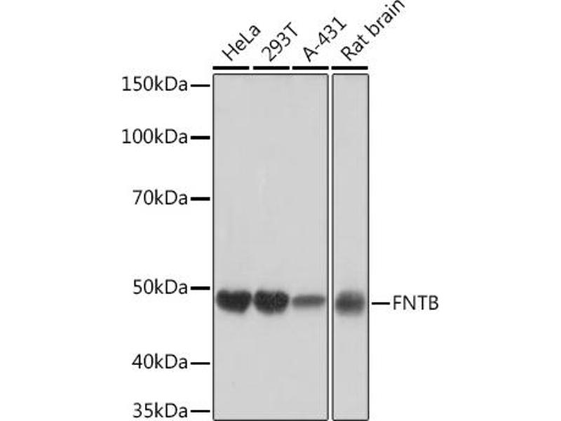 Essential subunit of the farnesyltransferase complex. Catalyzes the transfer of a farnesyl moiety from farnesyl diphosphate to a cysteine at the fourth position from the C-terminus of several proteins having the C-terminal sequence Cys-aliphatic-aliphatic-X.,FPTB,Amino acid metabolism,Endocrine & Metabolism,Signal Transduction,FNTB