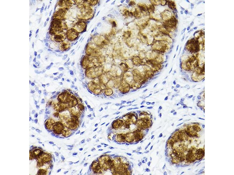 Members of the trefoil family are characterized by having at least one copy of the trefoil motif, a 40-amino acid domain that contains three conserved disulfides. They are stable secretory proteins expressed in gastrointestinal mucosa. Their functions are not defined, but they may protect the mucosa from insults, stabilize the mucus layer and affect healing of the epithelium. This gene is expressed in goblet cells of the intestines and colon. This gene and two other related trefoil family member genes are found in a cluster on chromosome 21. [provided by RefSeq, Jul 2008],ITF, P1B, TFI,Cell Biology & Developmental Biology,Cytoskeleton,Extracellular Matrix,Signal Transduction,TFF3