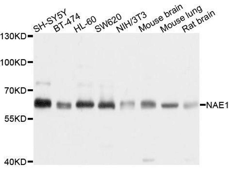 Der Kaninchen Polyklonal anti-NAE1 Antikörper (ABIN1680960) detektiert spezifisch NAE1 in WB.