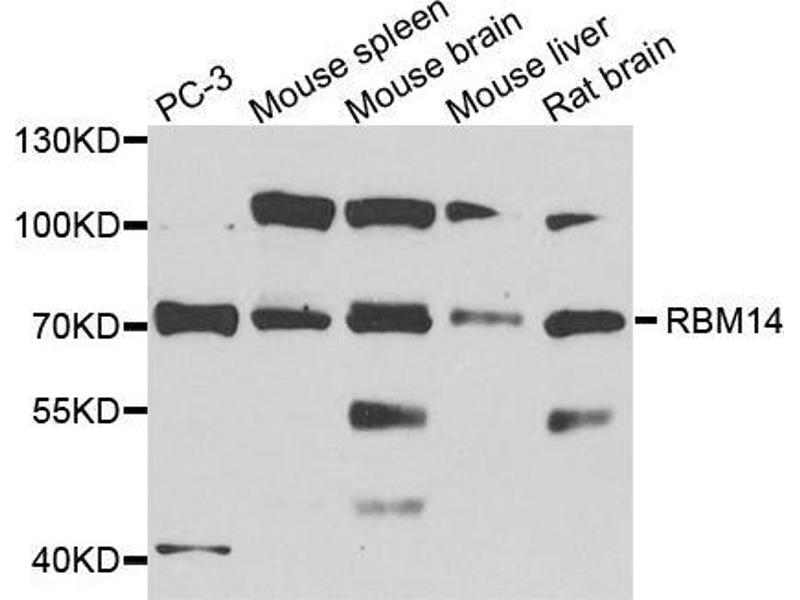 Kurzübersicht für RBM14 Antikörper (AA 1-99) (ABIN1682490)