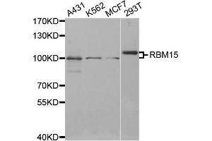 Members of the SPEN (Split-end) family of proteins, including RBM15, have repressor function in several signaling pathways and may bind to RNA through interaction with spliceosome components (Hiriart et al., 2005 [PubMed 16129689]).[supplied by OMIM, Feb 2009],RBM15,OTT,OTT1,SPEN,Epigenetics & Nuclear Signaling,RNA Binding,Stem Cells,Hematopoietic Progenitors,RBM15