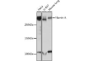 The protein encoded by this gene is an actin-binding protein that crosslinks actin filaments and links actin filaments to membrane glycoproteins. The encoded protein is involved in remodeling the cytoskeleton to effect changes in cell shape and migration. This protein interacts with integrins, transmembrane receptor complexes, and second messengers. Defects in this gene are a cause of several syndromes, including periventricular nodular heterotopias (PVNH1, PVNH4), otopalatodigital syndromes (OPD1, OPD2), frontometaphyseal dysplasia (FMD), Melnick-Needles syndrome (MNS), and X-linked congenital idiopathic intestinal pseudoobstruction (CIIPX). Two transcript variants encoding different isoforms have been found for this gene.[provided by RefSeq, Mar 2009],ABP-280, ABPX, CSBS, CVD1, FLN, FLN-A, FLN1, FMD, MNS, NHBP, OPD, OPD1, OPD2, XLVD, XMVD,Cell Biology & Developmental Biology,Cytoskeleton,Cytoskeleton_Actins,Cytoskeleton_Microfilaments,Epigenetics & Nuclear Signaling,MAPK-Erk Signaling Pathway,Protein phosphorylation,RNA Binding,Signal Transduction,FLNA