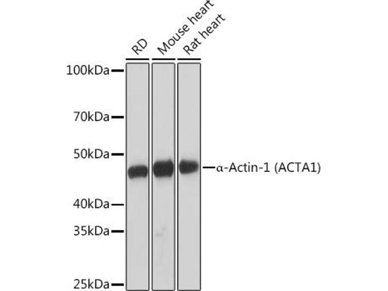 The product encoded by this gene belongs to the actin family of proteins, which are highly conserved proteins that play a role in cell motility, structure and integrity. Alpha, beta and gamma actin isoforms have been identified, with alpha actins being a major constituent of the contractile apparatus, while beta and gamma actins are involved in the regulation of cell motility. This actin is an alpha actin that is found in skeletal muscle. Mutations in this gene cause nemaline myopathy type 3, congenital myopathy with excess of thin myofilaments, congenital myopathy with cores, and congenital myopathy with fiber-type disproportion, diseases that lead to muscle fiber defects. [provided by RefSeq, Jul 2008],ACTA, ASMA, CFTD, CFTD1, CFTDM, MPFD, NEM1, NEM2, NEM3, SHPM,Cardiovascular,Cell Biology & Developmental Biology,Cytoskeleton,Cytoskeleton_Actins,Cytoskeleton_Microfilaments,Heart,Heart_Contractility,Signal Transduction,Actin (Alpha-Actin)