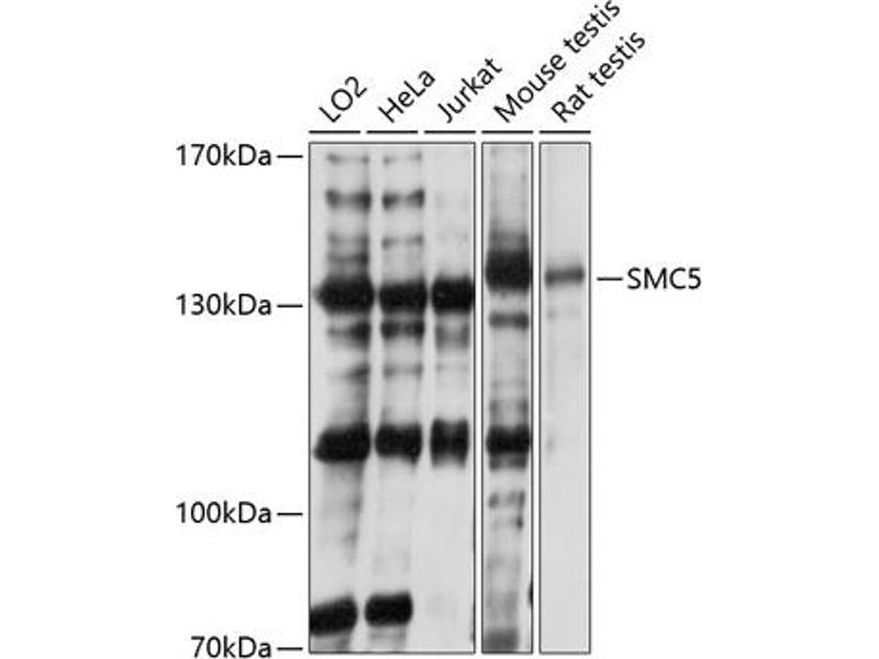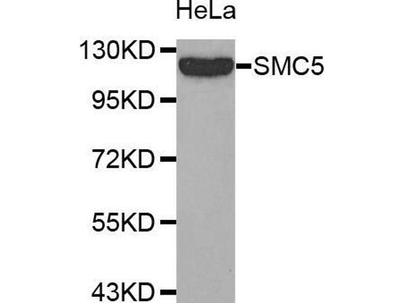Der Kaninchen Polyklonal anti-SMC5 Antikörper (ABIN1682829) detektiert spezifisch SMC5 in WB.
