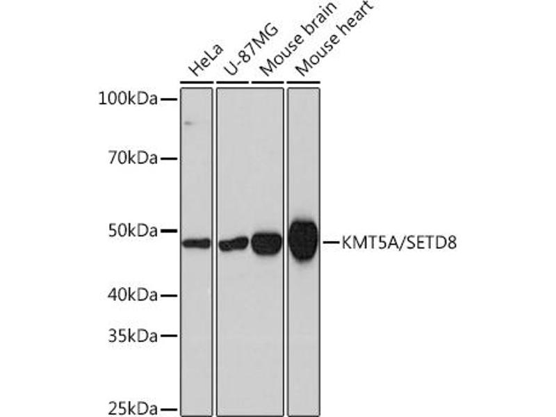 Der Kaninchen Monoklonal anti-SETD8 Antikörper (ABIN1682943) detektiert spezifisch SETD8 in WB.