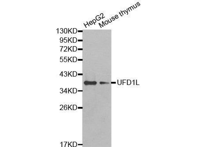 The protein encoded by this gene forms a complex with two other proteins, nuclear protein localization-4 and valosin-containing protein, and this complex is necessary for the degradation of ubiquitinated proteins. In addition, this complex controls the disassembly of the mitotic spindle and the formation of a closed nuclear envelope after mitosis. Mutations in this gene have been associated with Catch 22 syndrome as well as cardiac and craniofacial defects. Alternative splicing results in multiple transcript variants encoding different isoforms. A related pseudogene has been identified on chromosome 18.,UFD1,UFD1L,Cell Biology & Developmental Biology,Cell Cycle,Ubiquitin,UFD1L