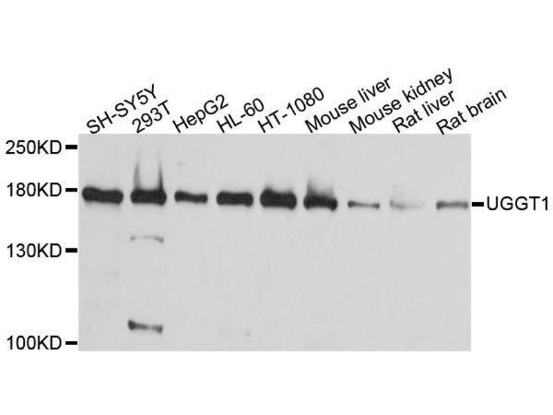 Der Kaninchen Polyklonal anti-UGGT1 Antikörper wird verwendet zum Nachweis von UGGT1 in Proben von Human. Er wurde validiert für WB.