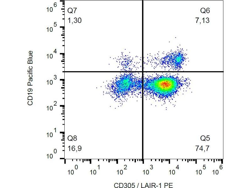 Der Maus Monoklonal Anti-LAIR1 Antikörper wurde für FACS validiert. Er ist geeignet, LAIR1 in Proben von Human zu detektieren. Es sind 6+ Publikationen verfügbar.