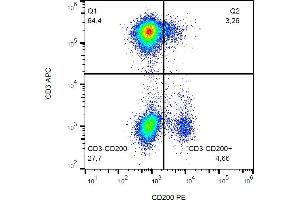 The mouse monoclonal antibody OX-104 recognizes an extracellular epitope of CD200, a type-1 glycoprotein of the immunoglobulin superfamily, which is expressed in neurons, B and T cell subsets, keratinocytes, follicular dendritic cells, and ovarian cells.