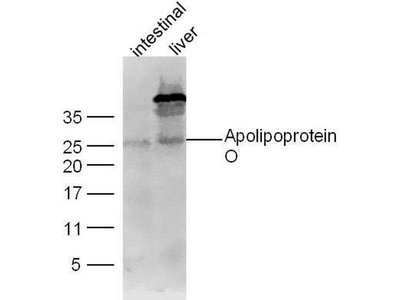 Background: Apolipoproteins are a family of fatty-acid binding proteins that transport fat through the bloodstream in the form of lipoproteins. ApoO (Apolipoprotein O), also known as FAM121B or My025, is a 198 amino acid single-pass membrane protein that belongs to the apolipoprotein family. Expressed ubiquitously with particularly high expression in diabetic heart tissue, apoO functions to promote the transport of cholesterol from macrophage cells and may be involved in regulatory mechanisms that protect lipid accumulation within the heart. ApoO is present in high density lipoproteins (HDLs) and low density lipoproteins (LDLs) and is secreted by an MTP (microsomal triglyceride transfer protein)-dependent mechanism. Two isoforms of apoO exist due to alternative splicing events.