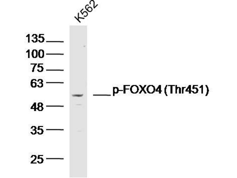 Synonyms: FOXO4 phospho T451,p-FOXO4 phospho T451, AFXSer197, Fork head domain transcription factor AFX1, AFX, AFX1, Afxh, ALL1-fused gene from X chromosome, Fork head domain transcription factor AFX1, Forkhead box O4, Forkhead box protein O4, FOXO 4, Mixed lineage leukemia, translocated to, 7, MLLT7, Myeloid lymphoid or mixed lineage leukemia translocated to 7, Myeloid/lymphoid or mixed lineage leukemia, translocated to, 7, Putative fork head domain transcription factor AFX1, FOXO4_HUMAN.