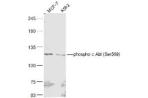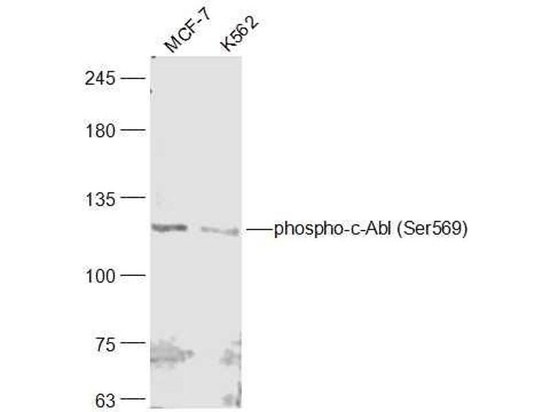 Synonyms: c Ablphospho S569, p-c Ablphospho S569, p-c Ablphospho Ser569, Abelson Murine Leukemia Viral Oncogene Homolog 1, Abelson murine leukemia viral v abl oncogene homolog 1, Abl 1, ABL, Abl protein, Abl1, Bcr/c abl oncogene protein, JTK 7, JTK7, p150 , Proto oncogene tyrosine protein kinase ABL1, Transformation gene oncogene ABL, v abl Abelson murine leukemia viral oncogene homolog 1, v abl, ABL1_HUMAN.