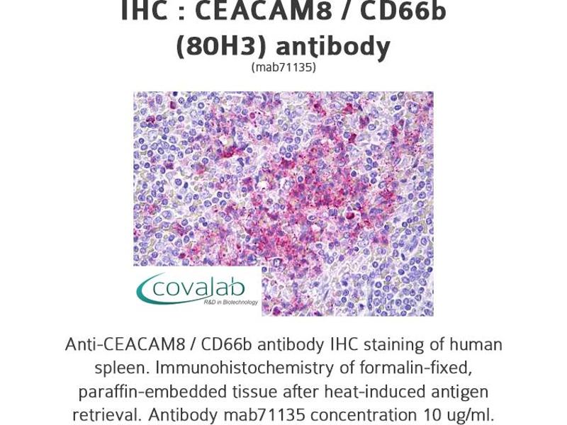 Der Maus Monoklonal Anti-CEACAM8 Antikörper wurde für FACS, IHC (fro) und IHC (p) validiert. Er ist geeignet, CEACAM8 in Proben von Human zu detektieren.