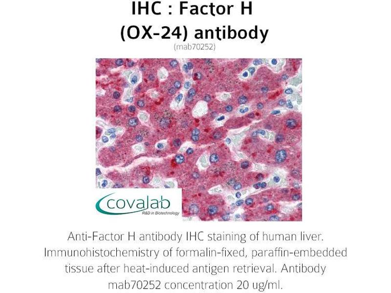 - This antibody recognizes the human serum complement protein factor H and a 43-49kD truncated form of factor H present at.