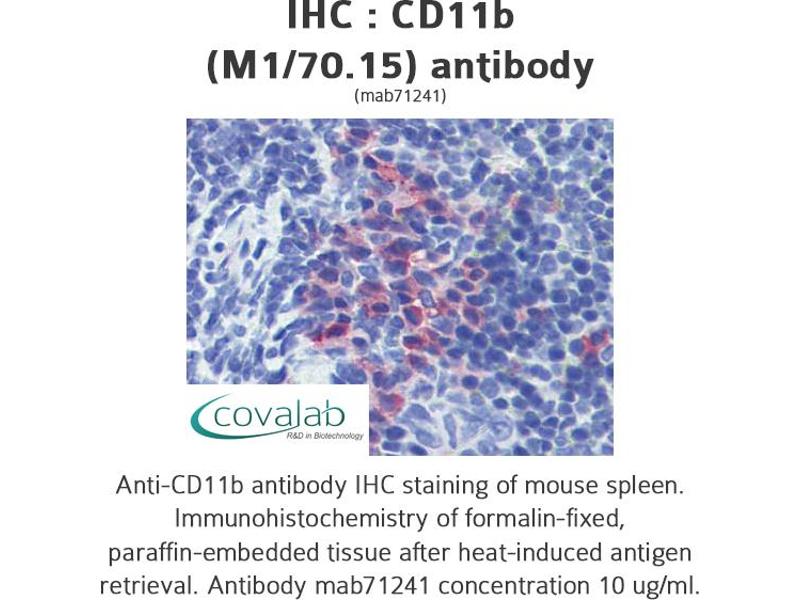 - Reacts with mouse, human and rabbit CD11b