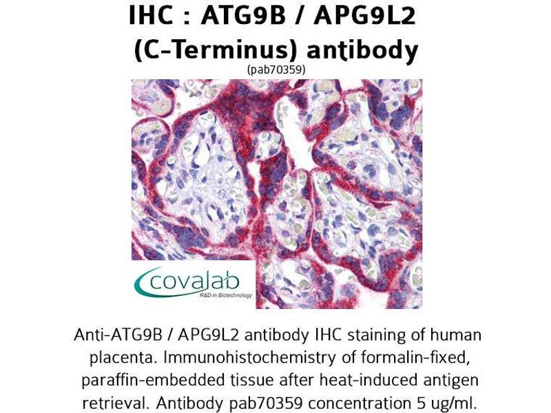 - Reacts with human ATG9B