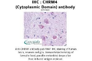 - Synthetic 20 amino acid peptide from 3rd cytoplasmic domain of human CHRM4. Percent identity with other species by BLAST analysis: Human (100%), Gorilla (100%), Mouse (100%), Rat (100%), Bovine (100%), Hamster (100%), Horse (100%), Pig (100%), Guinea ...