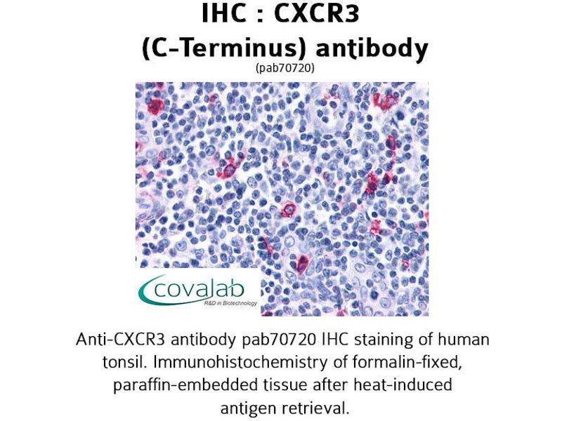 Synthetic 17 amino acid peptide from C-terminus of human CXCR3. Percent identity with other species by BLAST analysis: Human (100%), Gorilla (100%), Gibbon (100%), Monkey (100%), Marmoset (100%), Goat (82%), Panda (82%).