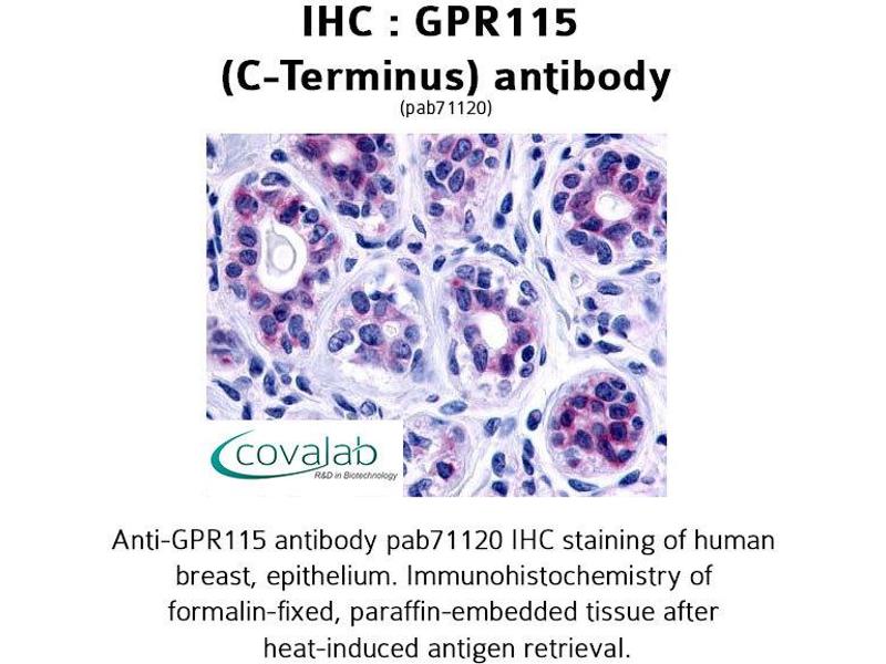 - Synthetic 16 amino acid peptide from C-terminus of human GPR115. Percent identity with other species by BLAST analysis: Human (100%), Gorilla (100%), Gibbon (100%), Monkey (100%), Marmoset (100%), Mouse (100%), Bovine (100%), Horse (100%)
