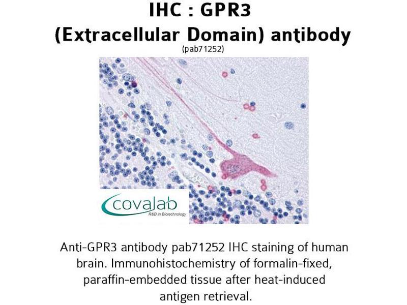 - Synthetic 15 amino acid peptide from 1st extracellular domain of human GPR3. Percent identity with other species by BLAST analysis: Human (100%), Gorilla (100%), Marmoset (100%), Panda (100%), Pig (100%), Gibbon (93%), Monkey (93%), Bovine (93%)