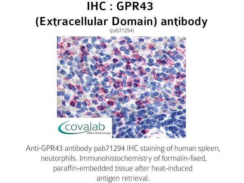 - Synthetic 17 amino acid peptide from 3rd extracellular domain of human GPR43. Percent identity with other species by BLAST analysis: Human (100%), Gorilla (100%), Monkey (100%).