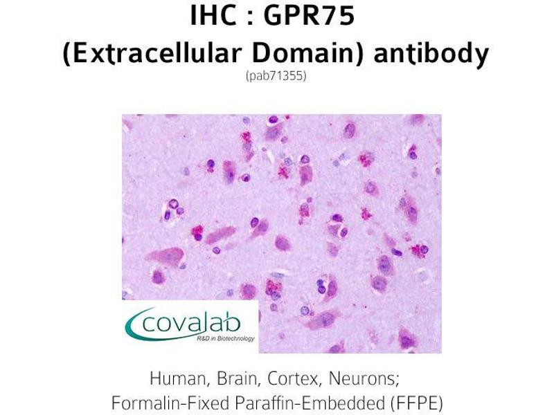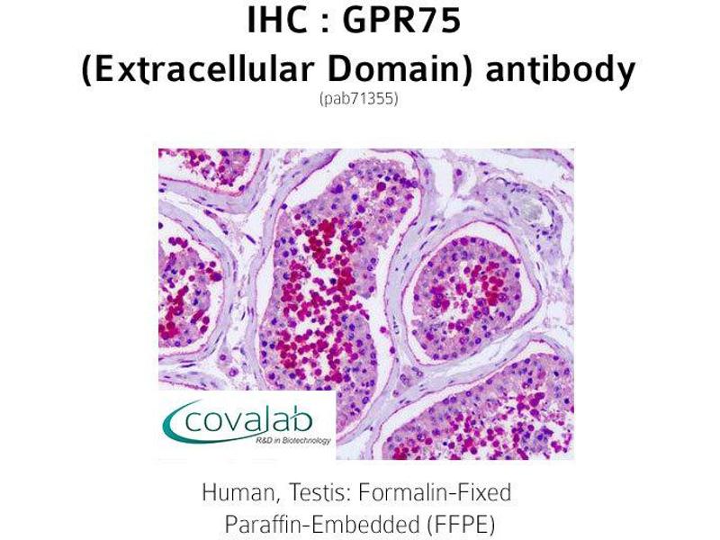 - Synthetic 16 amino acid peptide from 2nd extracellular domain of human GPR75. Percent identity with other species by BLAST analysis: Human (100%), Gorilla (100%), Monkey (100%), Bat (100%), Horse (100%), Xenopus (100%), Mouse (94%), Rat (94%)