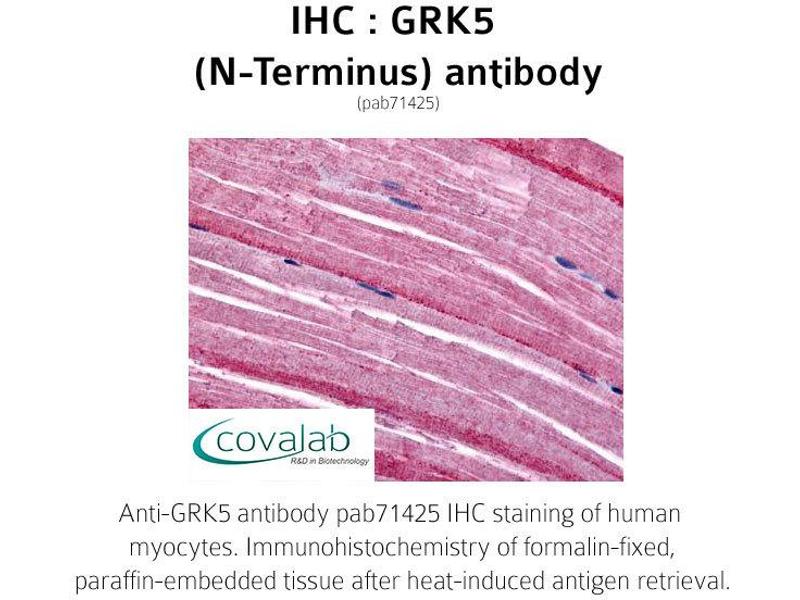 - Synthetic 15 amino acid peptide from N-terminus of human GRK5. Percent identity with other species by BLAST analysis: Human (100%), Gorilla (93%), Orangutan (93%), Gibbon (93%), Marmoset (93%), Bovine (93%), Horse (93%), Dog (87%), Elephant (87%)