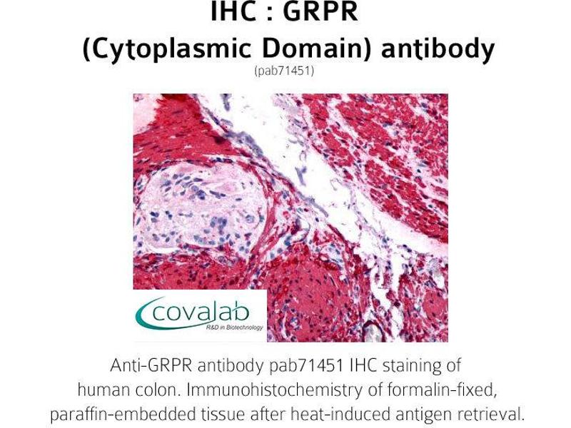- Reacts with GRPR from Human, Monkey, Mouse, Rat, Bat, Bovine, Dog, Hamster, Pig