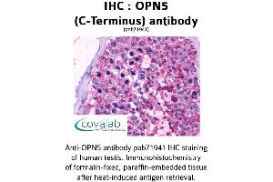 - Synthetic 16 amino acid peptide from C-terminus of human OPN5. Percent identity with other species by BLAST analysis: Human (100%), Gorilla (100%), Monkey (100%), Marmoset (100%), Dog (100%), Bovine (100%), Elephant (100%), Horse (100%), Rabbit (100%)