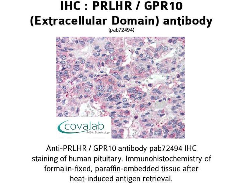 - Reacts with the extracellular domain of human PRLHR / GPR10